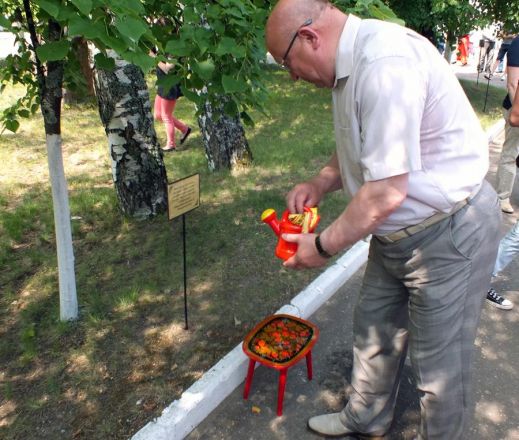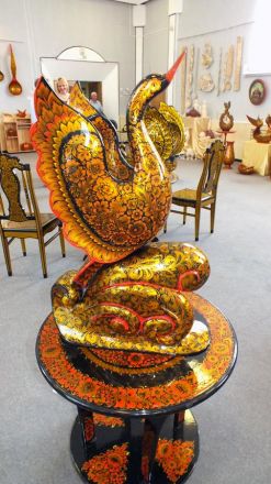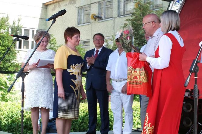 Прямо на территории предприятия развернулась сцена, с которой звучали песни о хохломе и традиционных изделиях. Многочисленных гостей развлекал небольшой оркестр, а высокопоставленные чиновники, коих приехало в Семенов более чем достаточно, произносили традиционные для подобных мероприятий поздравительные речи и награждали лучших мастеров.