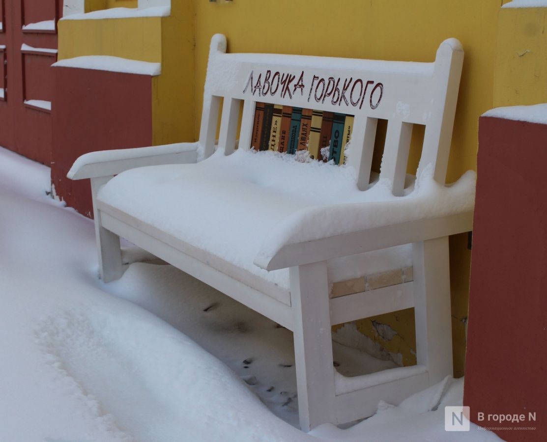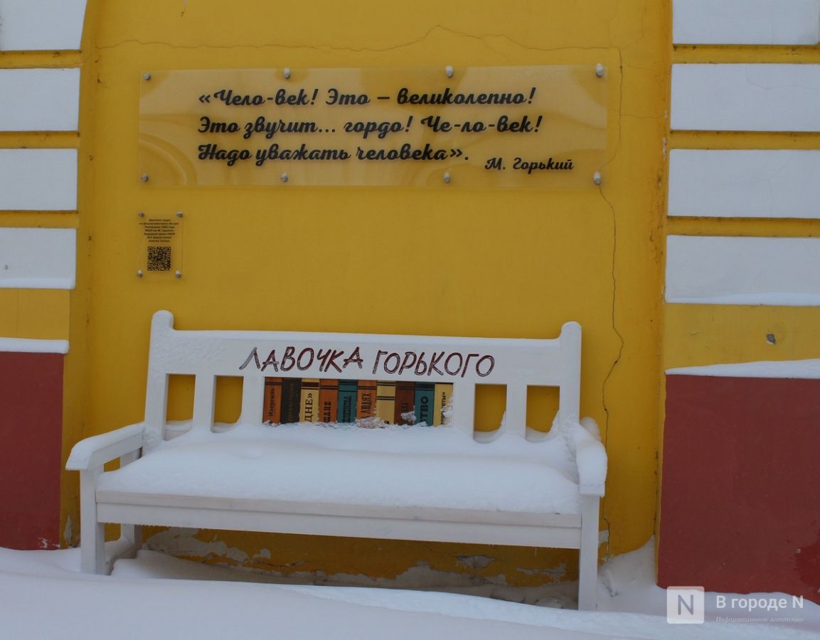 А совсем недавно, в январе 2026-го, здесь появился новый арт-объект — «Лавочка Горького». Спинку скамейки украшают корешки его самых известных книг, а на стене расположена цитата Сатина из пьесы «На дне». Если перейти по размещенному рядом QR-коду, можно ознакомиться с фрагментом из спектакля 1952 года. Монолог Сатина читает народный артист СССР Владимир Ершов.