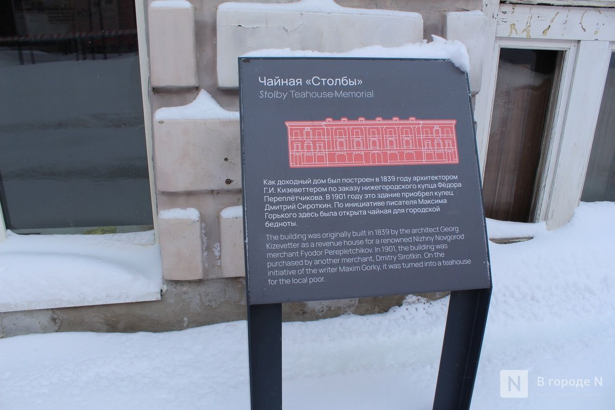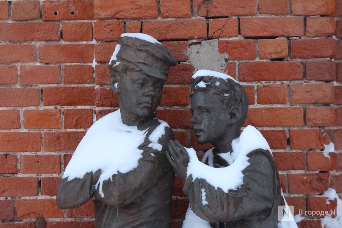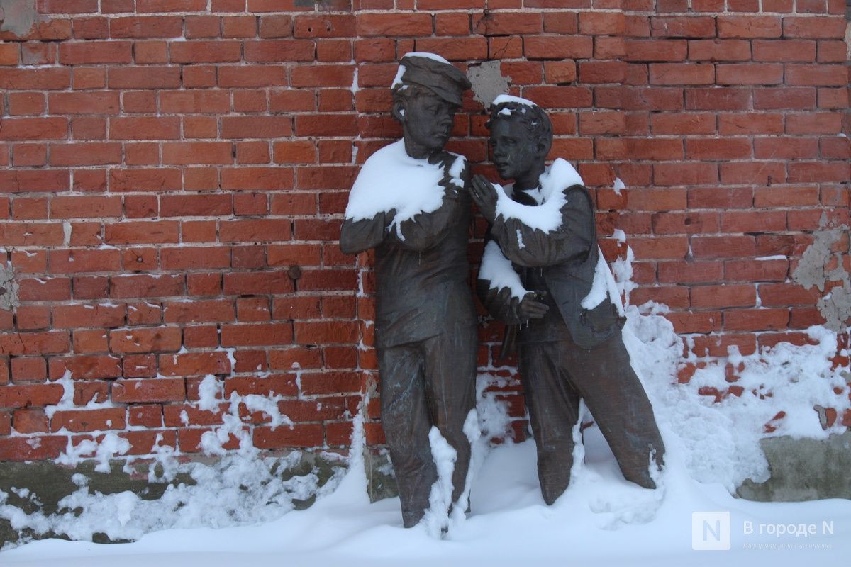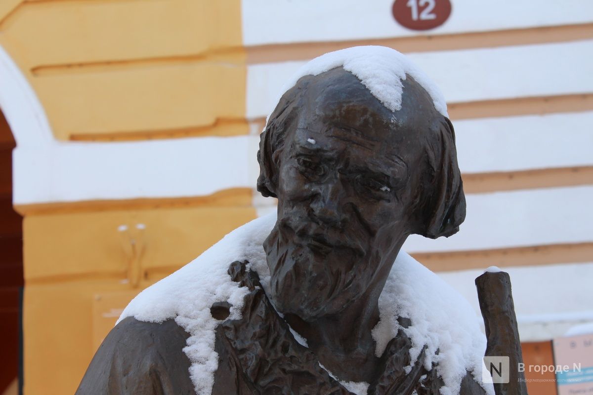А на доме № 14 не так давно появились барельефы с героями пьесы «На дне» (16+) . На них изображены персонажи постановки 1967 года в исполнении актеров Нижегородского театра драмы. Галерею создала художник Елена Кручинина.