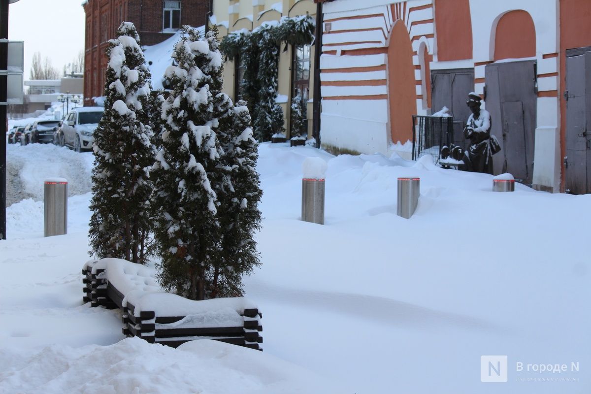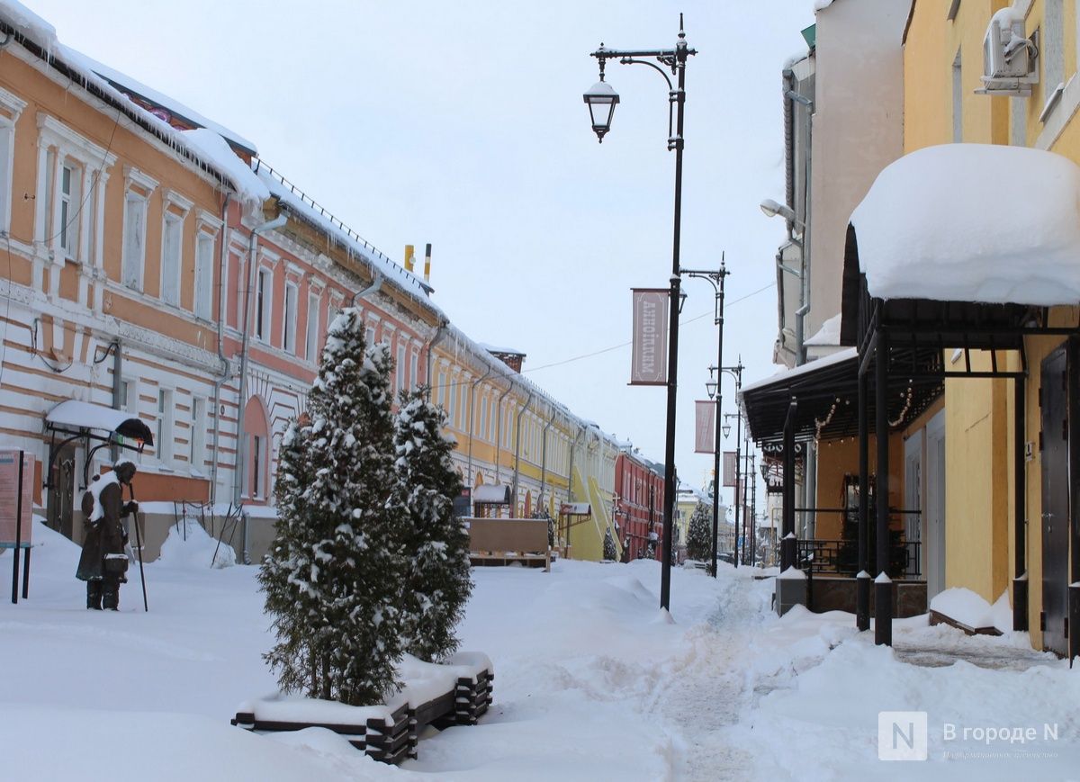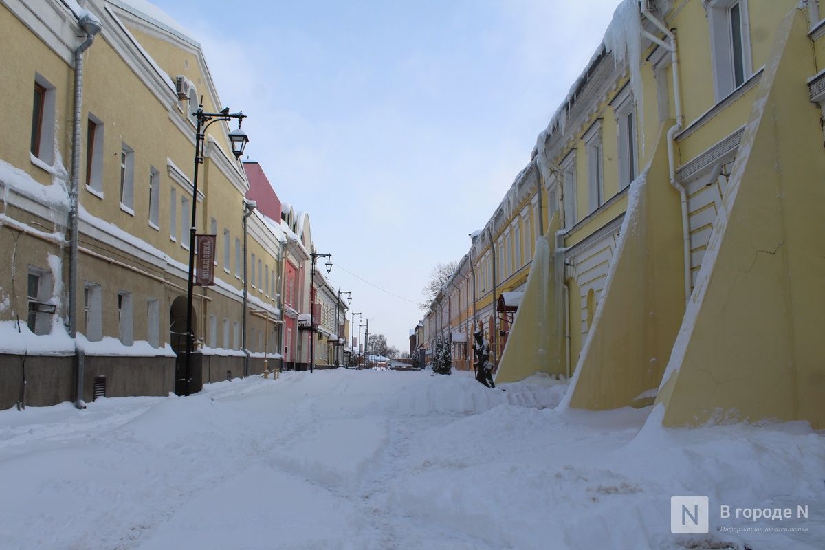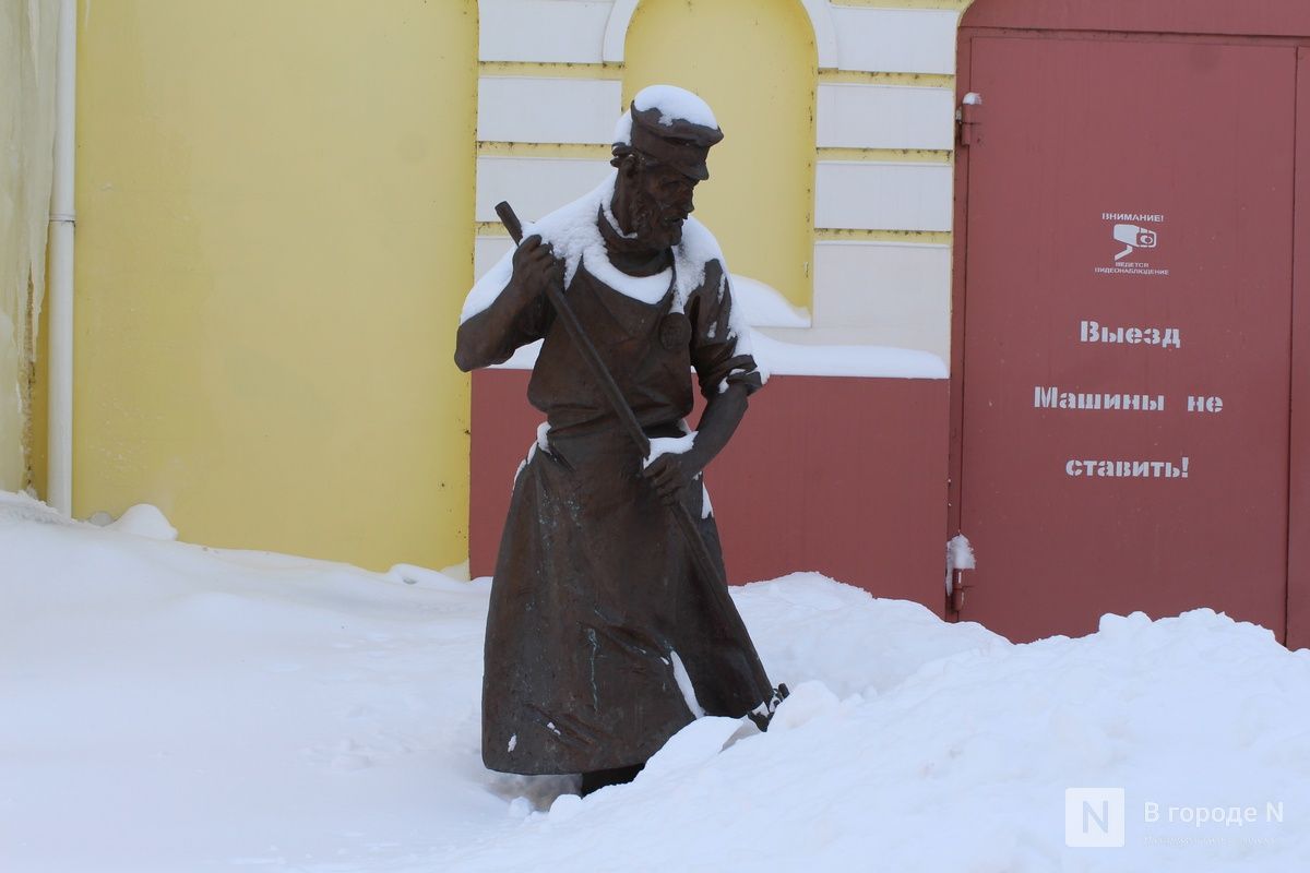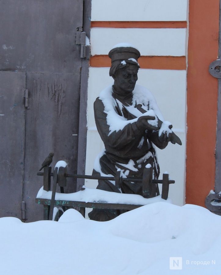 Коммунальщики сюда еще не добрались. Улица, по которой проходят туристические маршруты, после сильной метели утопает в сугробах, и людям приходится передвигаться по узким протоптанным тропинкам. На крышах опасно нависают сосульки и снежные «шапки». Оценить скульптуры в полной мере тоже невозможно. Например, фигура собаки рядом с дворником и ведро с рыбой, в которое пытается залезть кот, полностью скрыты под снегом. Наверное, улица-музей должна выглядеть более ухоженной и быть готовой к наплыву туристов в любое время года.