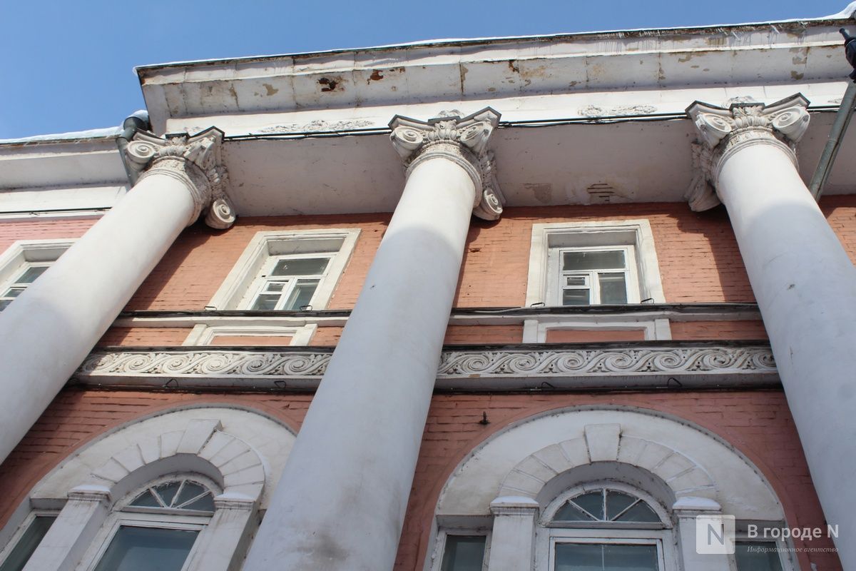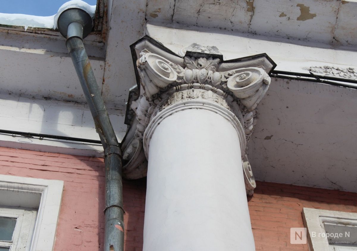 Здание украшают шесть колонн, за которые его прозвали «Столбами». Над ними размещены лепные маскароны с портретом античного бога Меркурия. Кроме того, «Столбы» знамениты тем, что в начале ХХ века по инициативе писателя Максима Горького там открылась чайная для бедноты. Это было не просто место, где босяки получали недорогую пищу и ночлег, но и настоящий культурный центр. На втором этаже здания располагался зал на 400 посетителей, где проводились литературно-музыкальные вечера, а нижегородский театр драмы отыграл там весь свой репертуар, еще работала библиотека. Люди могли приходить сюда бесплатно.