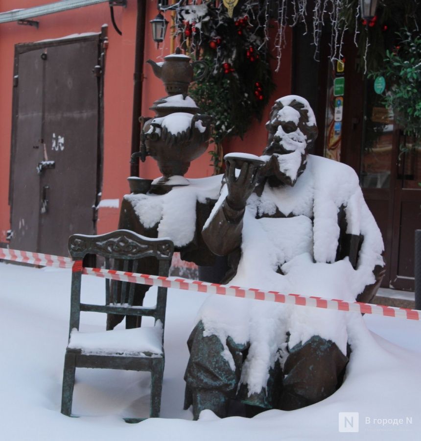 А не так давно рядом с ним появился оригинальный арт-объект — скульптура купца с самоваром. Туристы любят фотографироваться с ним, присев на свободный стул, предназначенный специально для этого. А чуть дальше расположена фигура торговки рыбой. Все эти арт-объекты, посвященные горожанам конца XIX — начала ХХ веков, создал нижегородский скульптор Алексей Щитов в 2023 году.