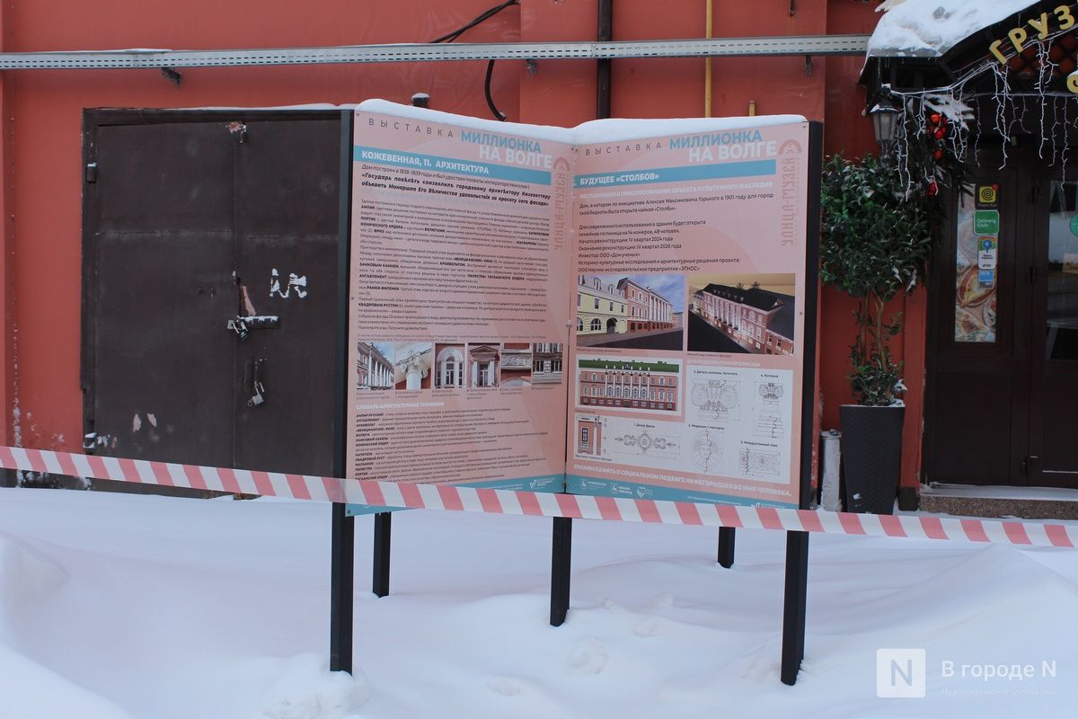 Если пройти немного вперед, можно посетить фотовыставку под открытым небом «Миллионка на Волге. Быт и нравы» (0+). Стенды размещены на каменном заборе, отделяющем прогулочную зону от здания «Красных казарм».