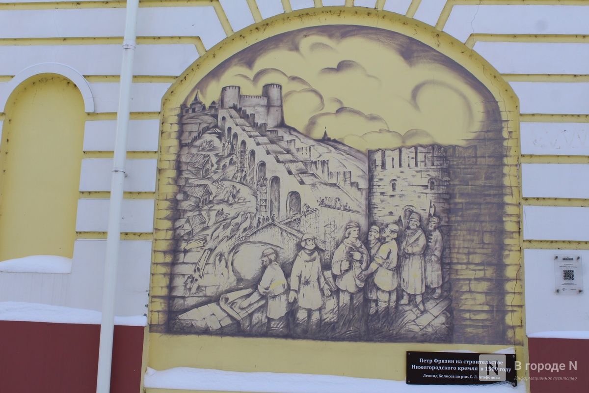 Ранее Леонид Колосов создал на Кожевенной еще несколько работ, посвященных истории Миллионки. Это панно «Обед бурлацкой артели», «Петр Фрязин на строительстве Нижегородского кремля» и «Грузчики Миллионки». В прошлом году художник отреставрировал их.