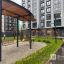 Посторонний шум с улицы тоже останется за пределами территории — внутренний двор защищен высотками. Внутри разбит собственный сад — зеленые туи и покрасневшие к осени гортензии, деревья и кустарники с багряными листьями. Здесь же — спортивная и детская площадки с песочницей, игровым комплексом и качелями, рядом — уютная купольная беседка для отдыха на свежем воздухе.