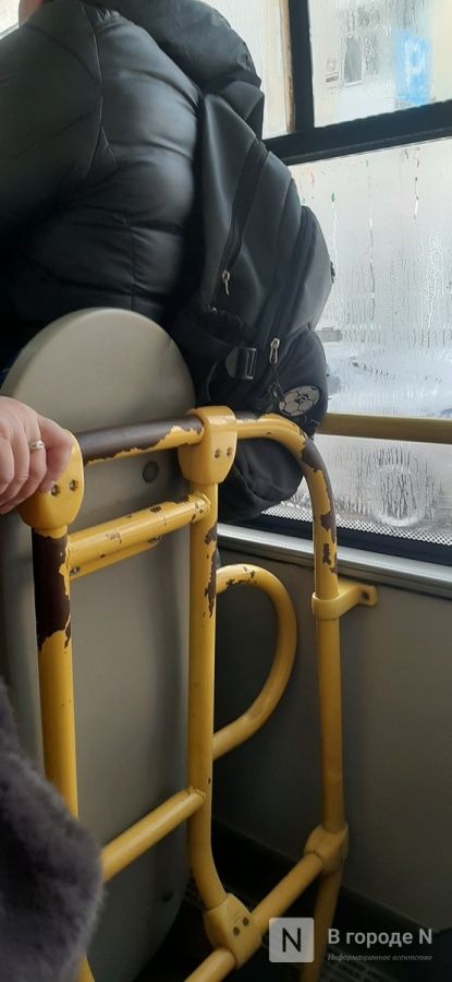 Еще из минусов корреспондент ИА «В городе N» отметила облезлые поручни и то, что остановки объявляли через раз. Оценить состояние сидений и пола возможности не было из-за нереального количества людей в салоне.