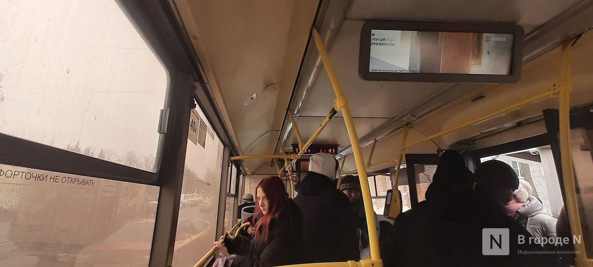 Корреспондент ИА «В городе N» воспользовалась автобусом большого класса, который подошел к остановке на Нижневолжской набережной первым. Это было около полудня, то есть, утренние часы пик прошли, а до вечерних еще далеко. Тем не менее, в салоне тоже оказалась жуткая давка. Правда, на площади Минина и Пожарского многие вышли, и даже появились свободные сидячие места. Однако потом салон снова забился. И это автобус большого класса, а что происходит в средних, можно только догадываться.