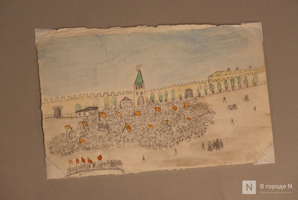 Есть в музее еще один уникальный экспонат — детский рисунок. Его автор — сын Павла Малиновского Лев. Архитектор был известен своими большевистскими взглядами, и восьмилетний мальчик изобразил революционные события 1905 года. Впоследствии судьба сына Павла Малиновского сложилась трагически. В 1938 году Лев был расстрелян. Незавидная участь ждала и дочерей архитектора — Антонину и Елену. Десять лет они провели в лагерях. В дальнейшем Елена Малиновская передала нижегородскому музею архивы своего отца.