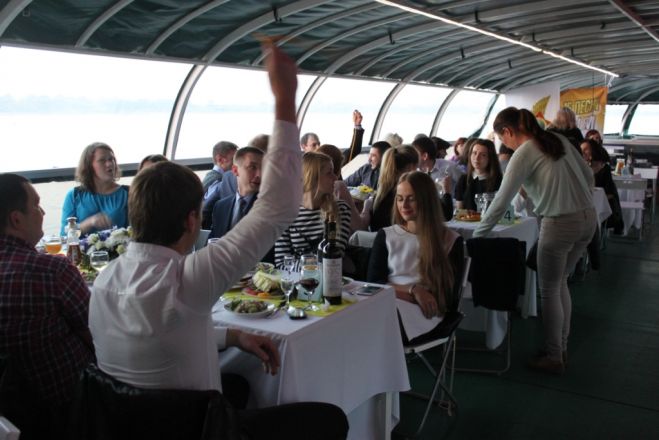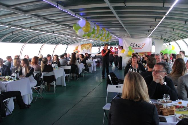 Презентацию нового сезона Нижегородский радиохолдинг провел для своих партнеров и рекламодателей в один из теплых сентябрьских вечеров на борту теплохода «Сура».
