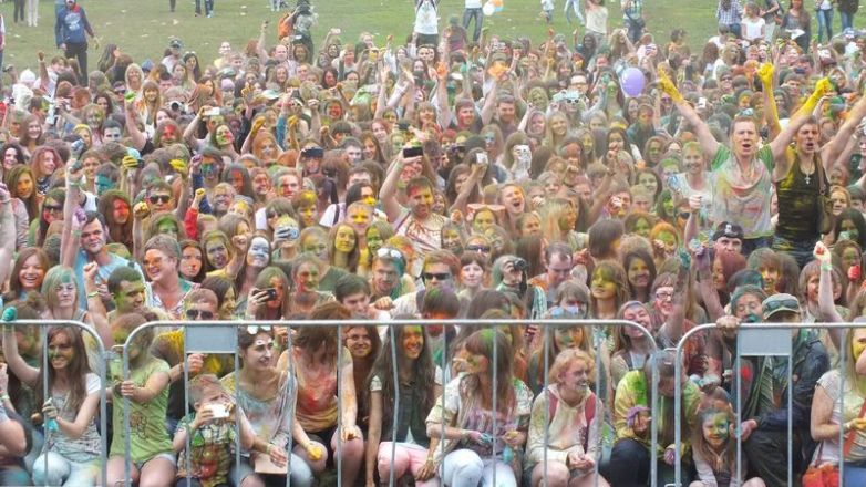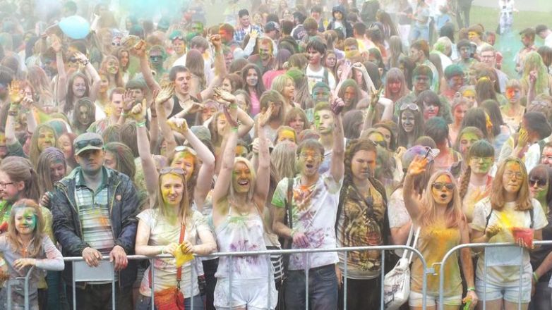 Действительно, несмотря на ненастную погоду люди всех возрастов, забыв про повседневные дела, забрасывали друг друга пригоршнями ярких красок всевозможных цветов. Кстати, порошковую краску можно было выбрать при входе на стадион.