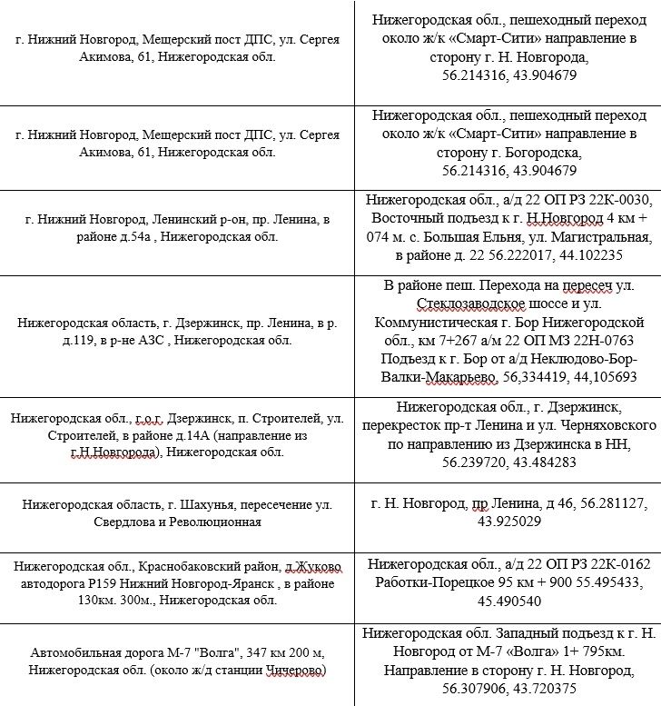 Речь идет о списке из 23 локаций, откуда технику перенесут на новые места. В частности, например, камеры появятся на пешеходных переходах около ЖК «Smart City», а также на Восточном подъезде к столице Приволжья. Полный список изменений публикуем ниже.