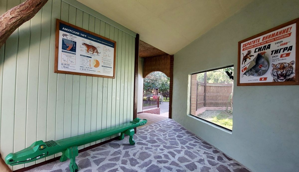 Уссурийскому хищнику теперь доступен просторный отапливаемый павильон, в котором предусмотрено логово для родов будущей самки. Стены павильона украсили пейзажи мест обитания амурского тигра. В части вольера, которая находится на улице, установлены новый деревянный подиум, новые игрушки в виде подвесной шины и шара. Еще новый вольер украсил информационный стенд, где можно узнать о силе амурского хищника.