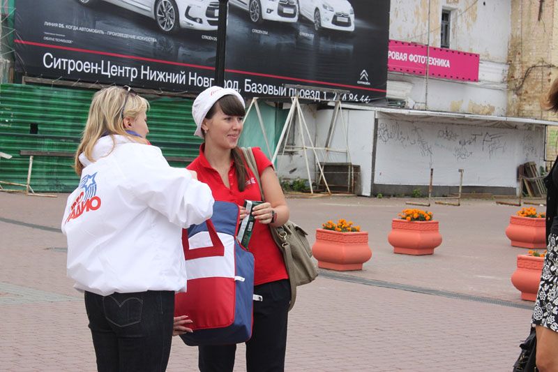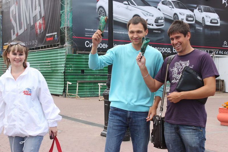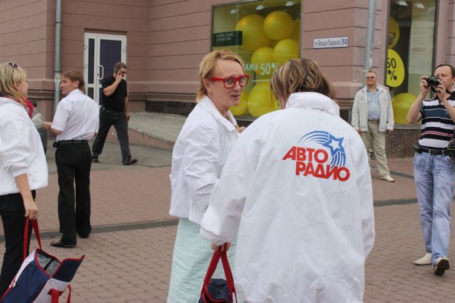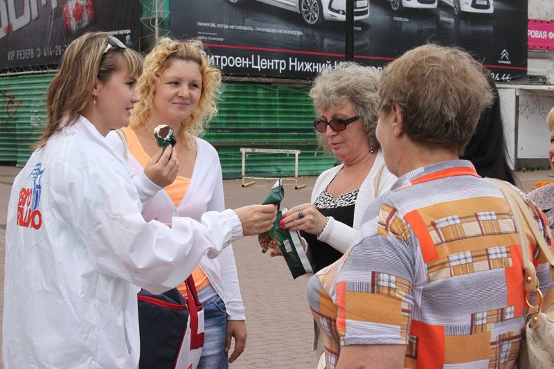 С 25 июля команда "Авторадио" начала праздничную раздачу мороженого. Симпатичные девушки в авторадийной форме дарили сладкие сюрпризы всем-всем прохожим на улице Большая Покровская. Нижегородцы с удовольствием и приятным удивлением принимали неожиданные подарки.