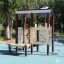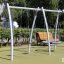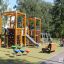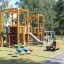 Вторая площадка рассчитана на ребят постарше — от семи до 12 лет. Здесь установили большой игровой комплекс и качели. Парковка для самокатов тут тоже предусмотрена.