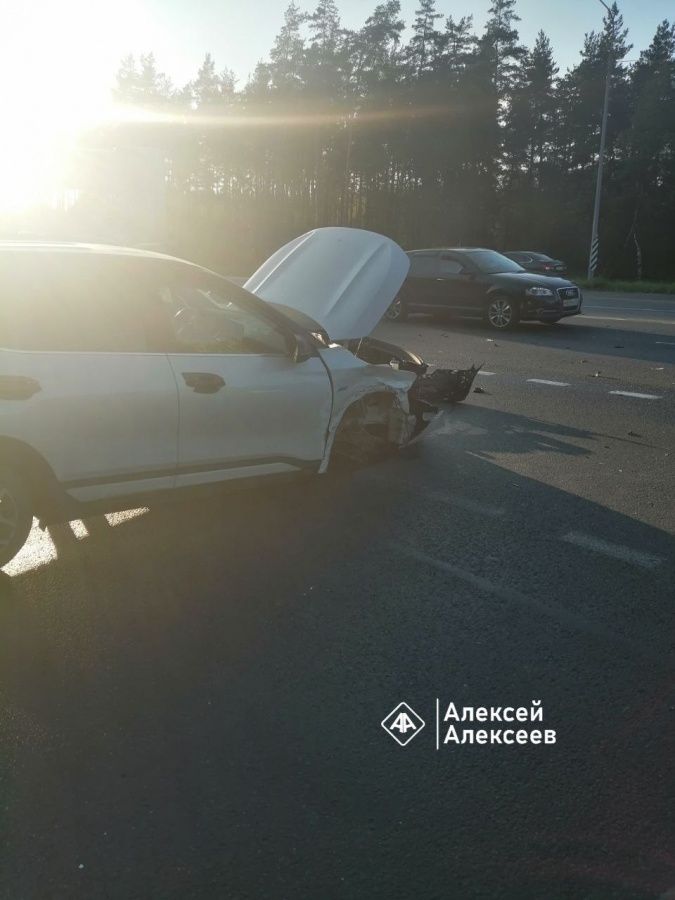 Авария, по словам источника, случилась на повороте на ГосНИИ «Кристалл». Как видно по опубликованным кадрам, у одного из автомобилей полностью разбита передняя часть кузова, а у второго отсутствует колесо и отвалился бампер. Вокруг также разбросано множество мелких деталей, отлетевших в результате аварии.