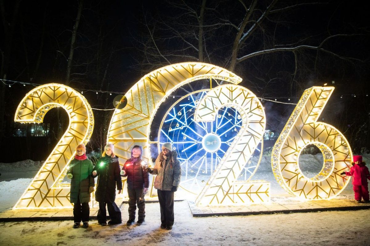 Гигантскую 14-метровую елку в парке «Станкозавод» видно издалека. Тысячи огней на ней зажгли энергетики Эн+. Цифры 2026 высотой 4 метра, сияющие фонари — это самая популярная фотозона в Ленинском районе, притягивающая своим светом детей и взрослых.