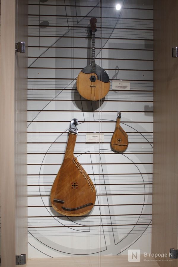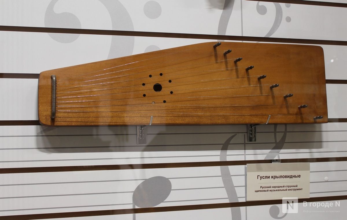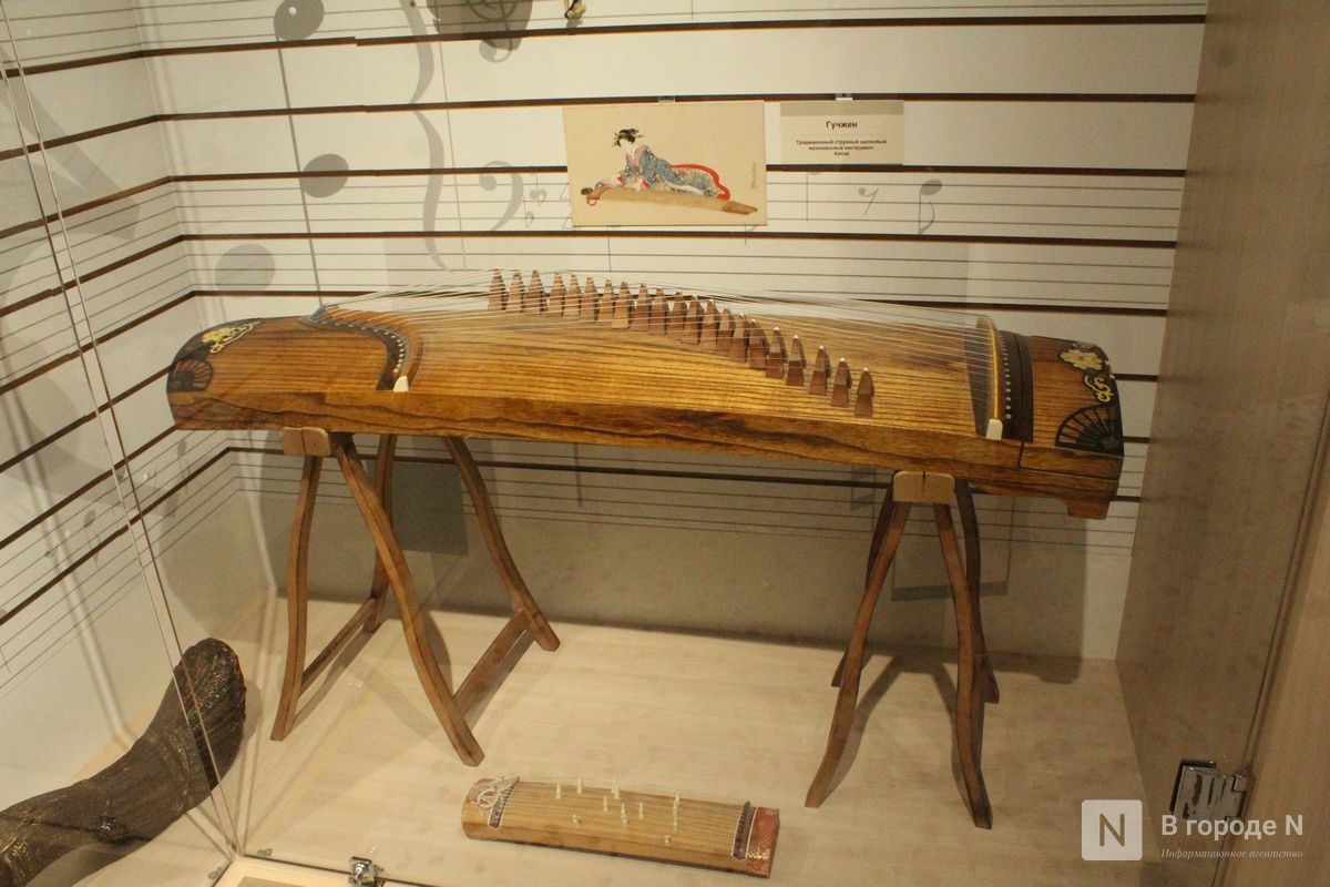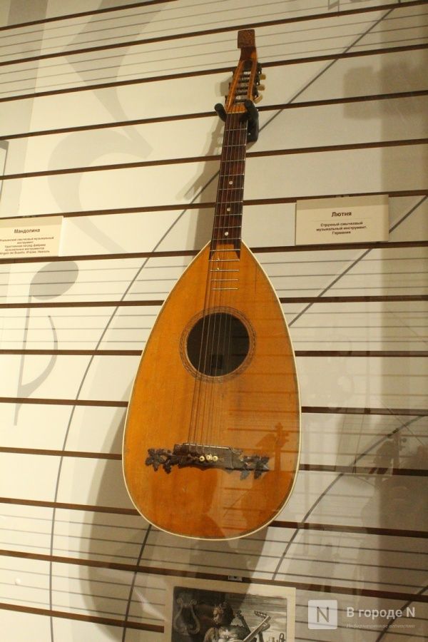 Экспозиция поделена на две части. В первой представлены старинные инструменты. Многие из них уже давно не используются в современной музыке, но в прошлые столетия они были очень популярны. Среди них — лютня, фисгармонии, гусли.