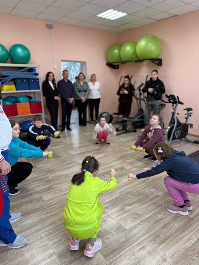 Интернат получил велосипеды, эллипсы, беговые дорожки, фитоболы, обручи, тренажеры для ног и рук, помогающие слабовидящим детям заниматься спортом и поддерживать мышечный тонус. Гриневич лично посетила урок физкультуры, где ребята занимались на новом оборудовании.