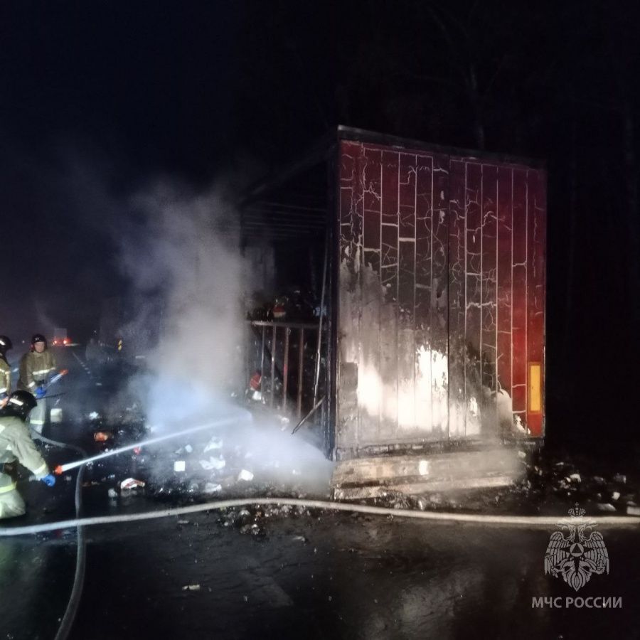 Авария произошла на 521-м километре трассы в Лысковском округе. У грузового автомобиля во время движения внезапно загорелся прицеп.