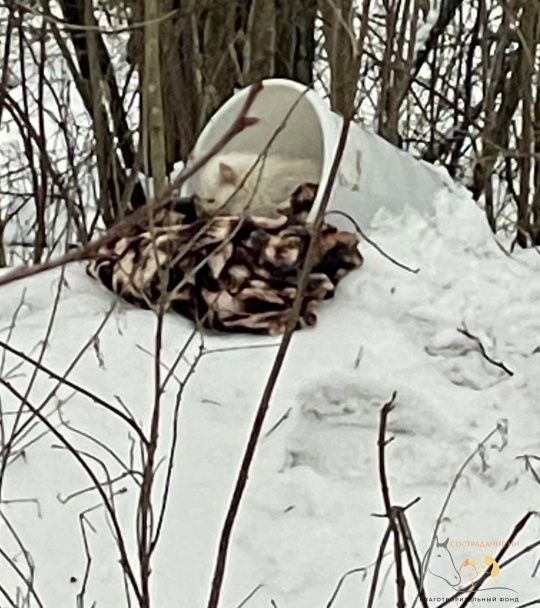 Малыш укрывался от морозова в пластиковом ведерке. Однако если бы активисты промедлили, он, скорее всего, умер бы от холода на следующей неделе. Сейчас котенок проходит лечение в ветеринарной клинике.