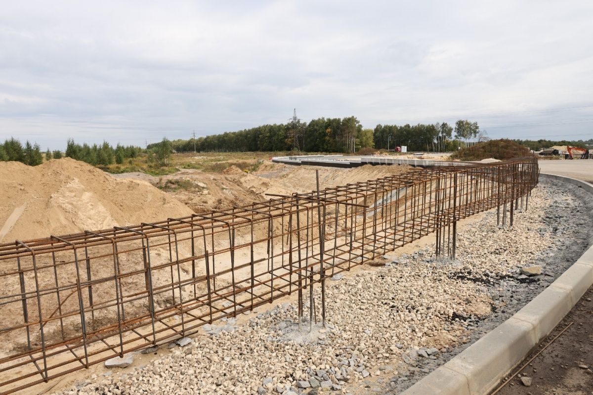 Он отметил, что первый этап второй очереди выполнен уже на 21,3%, второй — почти на 40%, а третья очередь — на 35,4%. Одновременно с основным земляным полотном и дорожной одеждой возводятся путепроводы и мосты. На мосту через ручей на ПК 37 в настоящее время уже завершается устройство проезжей части. На строительной площадке работают 150 человек и свыше 50 единиц техники.