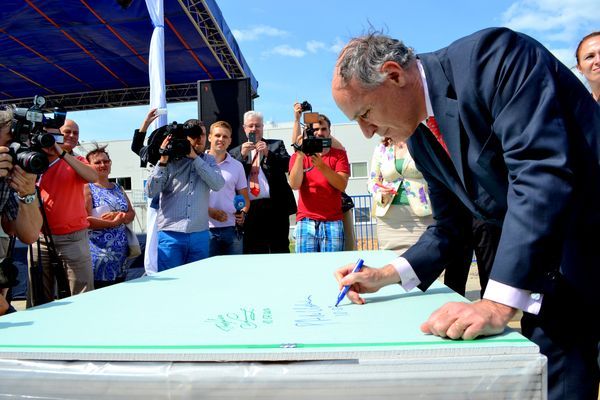 Торжественная церемония открытия завода по производству гипсокартона «Сен-Гобен» состоялась в деревне Гомзово Павловского района в среду, 10 июля.