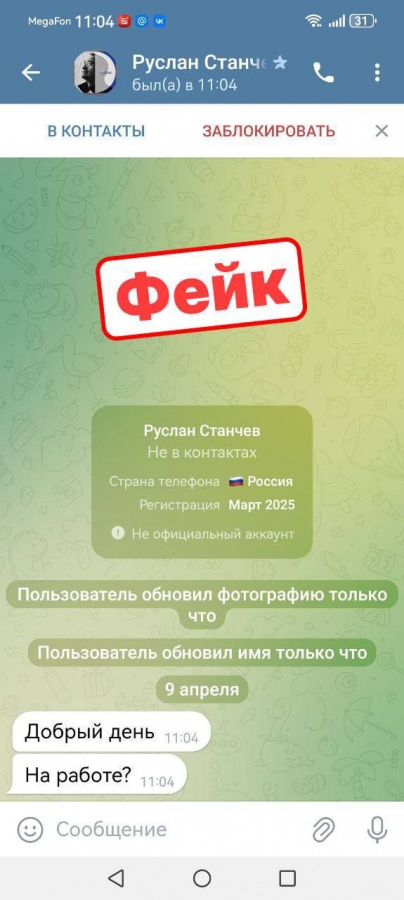 Нижегородцев просят проявить бдительность, не продолжать подозрительные переписки в случае их возникновения и добавить фейковый аккаунт в черный список.