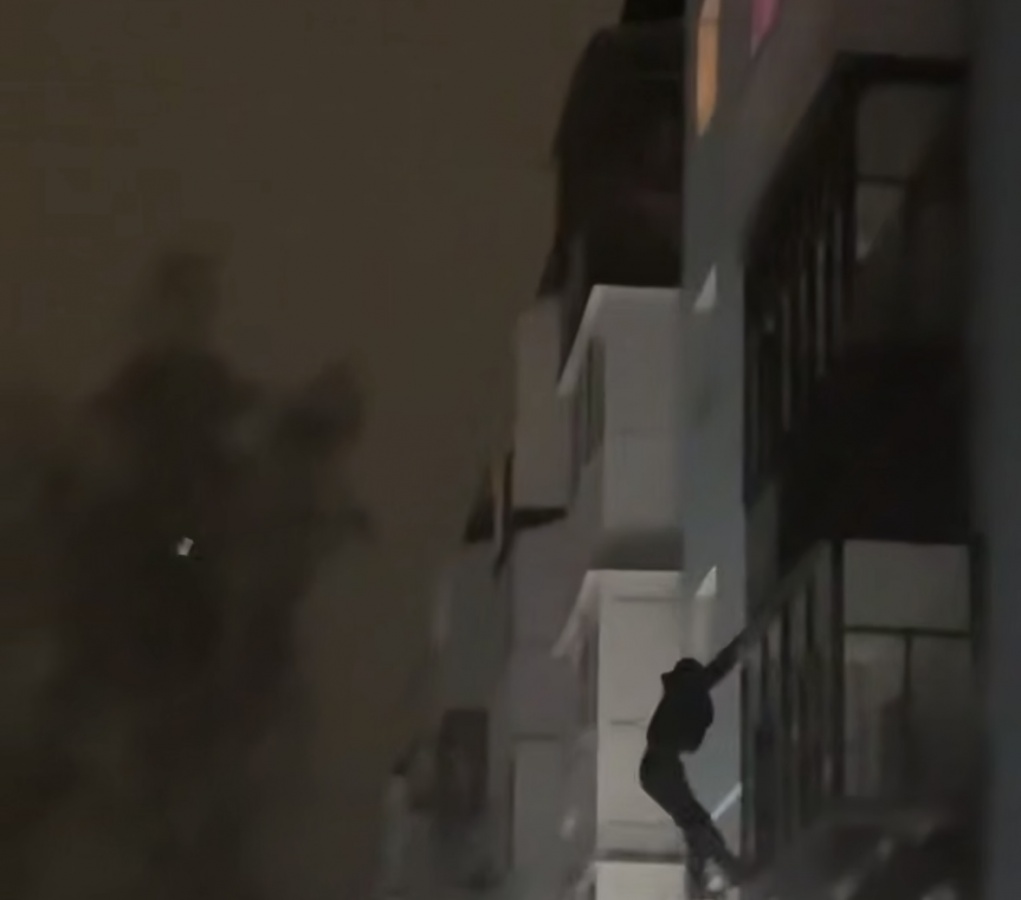 Мужчина повис на уровне третьего этажа, ухватившись за перегородку. Пытаясь спуститься вниз, он не удержался и упал на землю.