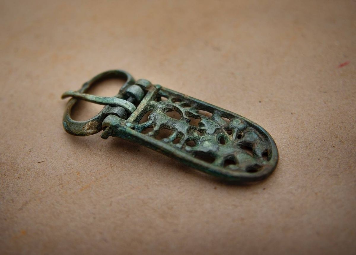 Например, мужской поясной набор с уникальной пряжкой тонкой ювелирной работы, внутри рамки — рельефные изображения двух животных, показана сцена преследования оленя хищником. Подобные изделия делали на территории Прикамья (ныне Пермский край) во 2-й половине VIII века. Это очень редкие изделия, а у нас в регионе найдены впервые! — написал Глеб Никитин.