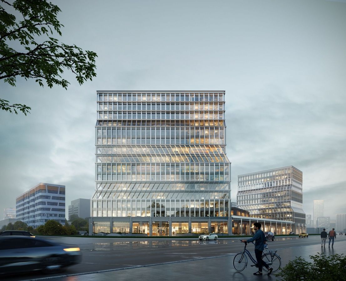 Технологический комплекс будет состоять из двух корпусов высотой в 11 и 15 этажей, объединенных галереей и многофункциональным таун-холлом. Его площадь превысит 49 тысяч квадратных метров. Согласно архитектурной концепции, разработанной бюро IND, здания будут асимметричной формы, а динамический рисунок, собранный из алюминиевых пластин и фиброцементных перегородок, будет отражать дневной свет.