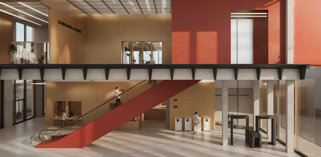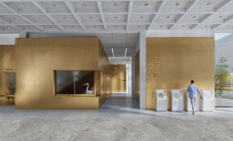 Уточняется, что помещения будут выполнены в золотистых, белых и черных цветах. Кроме того, основные механизмы и эскалаторы будут выделены красным. В двухэтажных зданиях будут панорамные окна, которые позволят гостям столицы Приволжья и местным жителям увидеть их изнутри.
