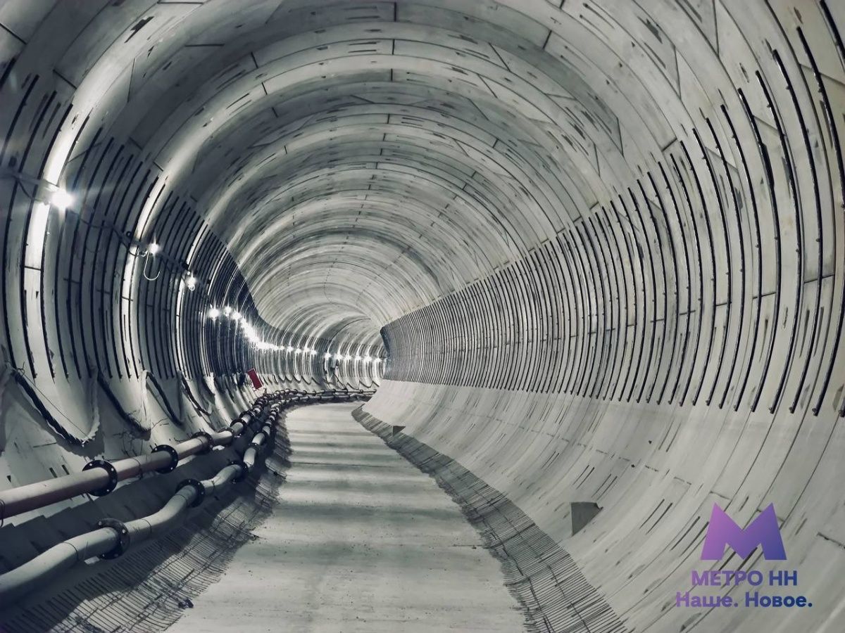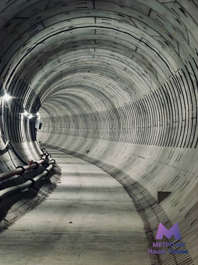 Тем временем, в перегонном тоннеле, расположенном слева, метростроители завершают демонтаж тоннелепроходческого комплекса, а затем работники также приступят к обустройству инженерным оборудованием.