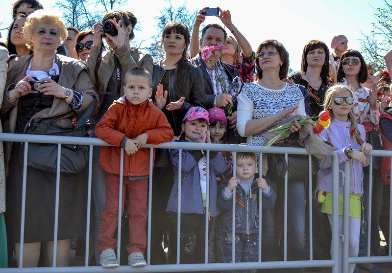 В это время на площади Народного единства начал свое шествие «Бессмертный полк». Более 10 тысяч жителей и гостей города пронесли по центральным улицам фотографии своих родственников, участвовавших в войне.