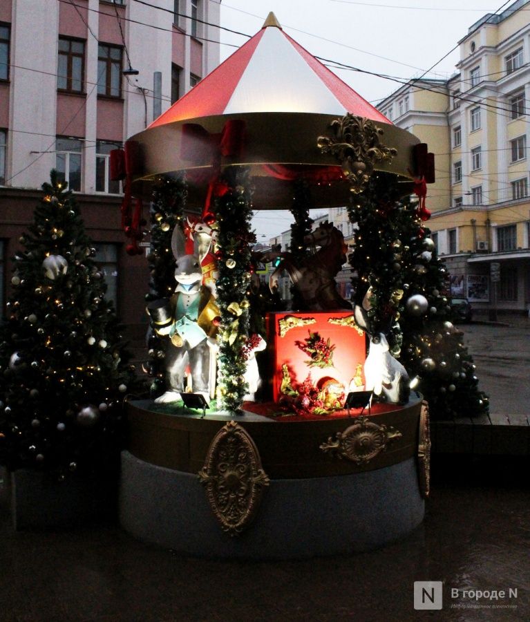 Новую фотозону снова оформили фигурками кроликов, знакомыми нижегородцам с прошлых лет. Однако и символы наступающего года — лошади — тут тоже присутствуют. Инсталляция выполнена в виде рождественской карусели. Также ее украшают елки, шары и другие новогодние игрушки.