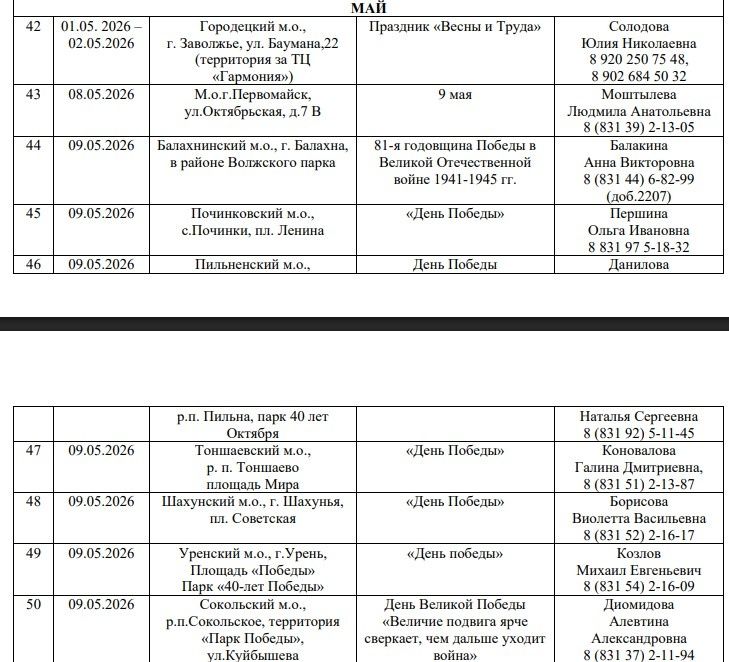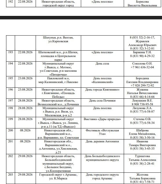 Ниже представлены карточки, в которых можно найти подробную информацию о работе ярмарок на протяжении всего года: