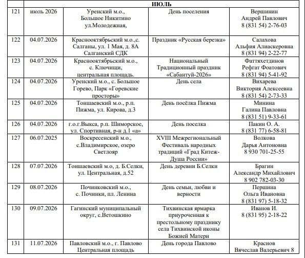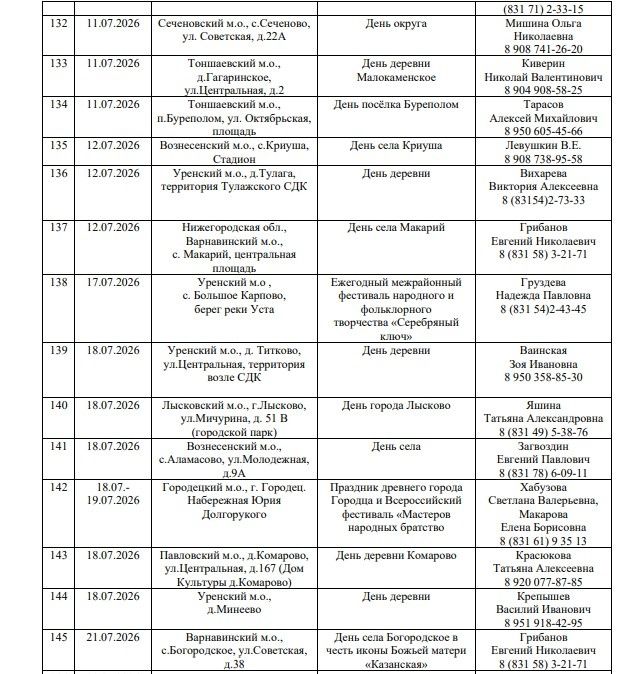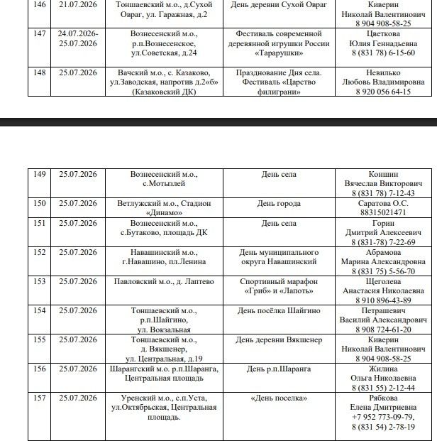 Обычно ярмарки проводятся в Дни районов, городов и сел, государственных праздников и во время проведения фестивалей народных художественных промыслов. Глава нижегородского Минпромторга Максим Черкасов подчеркнул, что максимальное количество ярмарок придется на лето. Их проведут по всей области, но больше всего — в Уренском, Павловском, Сеченовском, Вознесенском, Бутурлинском округах. К примеру, первая ярмарка запланирована уже на 18 января в Павловском округе.