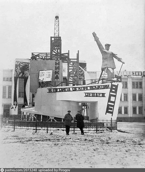 Новогодняя елка во Дворце им. Ленина, 1944-1945 / pastvu.com; Канавино. «Техника в период реконструкции решает все», 1931 / pastvu.com; Дворец культуры им. В.И. Ленина, 1942. Книга «Советский Горький» / pastvu.com