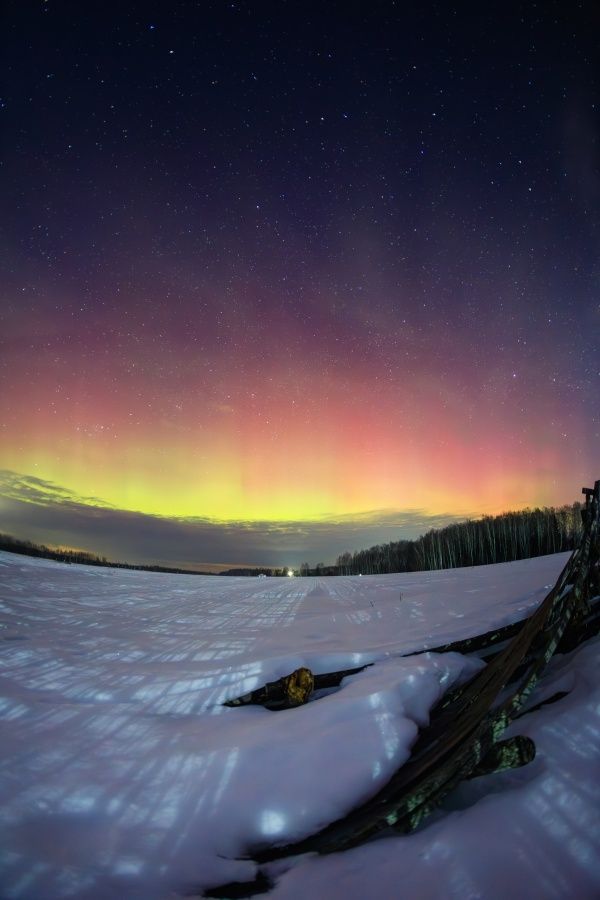 Небосвод в ночь на 21 марта окрасился всполохами самых разнообразных цветов, переливаясь лиловыми, розовыми, желтыми и зелеными оттенками. Заметить полярное сияние в самом Нижнем Новгороде было практически невозможно из-за обилия искусственного освещения, зато разглядеть его повезло жителям области.