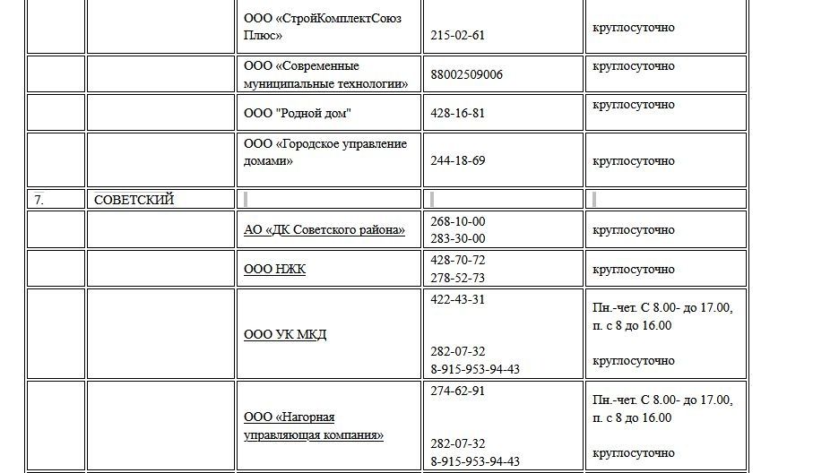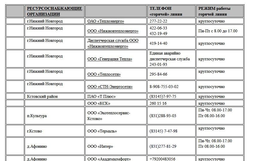 Также горячие линии будут работать в районных администрациях и ресурсоснабжающих компаниях. Их телефоны указаны в карточках: