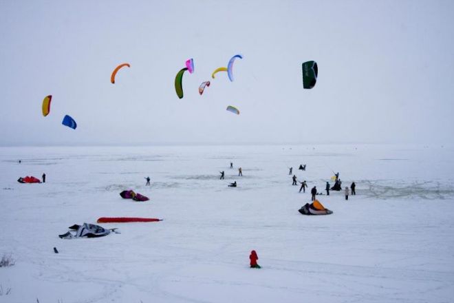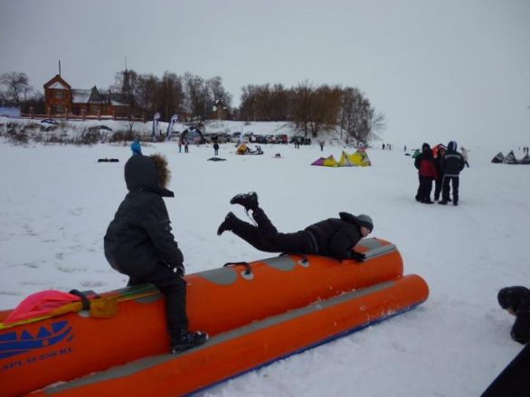 Наряду со взрослыми спортсменами в соревнованиях, пока в качестве зрителей и обучающихся, участвовали дети из Сокольского парусного клуба и уже успели испытать на себе пилотажный кайт и поучиться им управлять. 8 января все желающие также могли подержать в руках небольшой кайт. Здесь преуспели чкаловские девчонки – мальчишки, видимо, побоялись выходить на подтаявший лед.