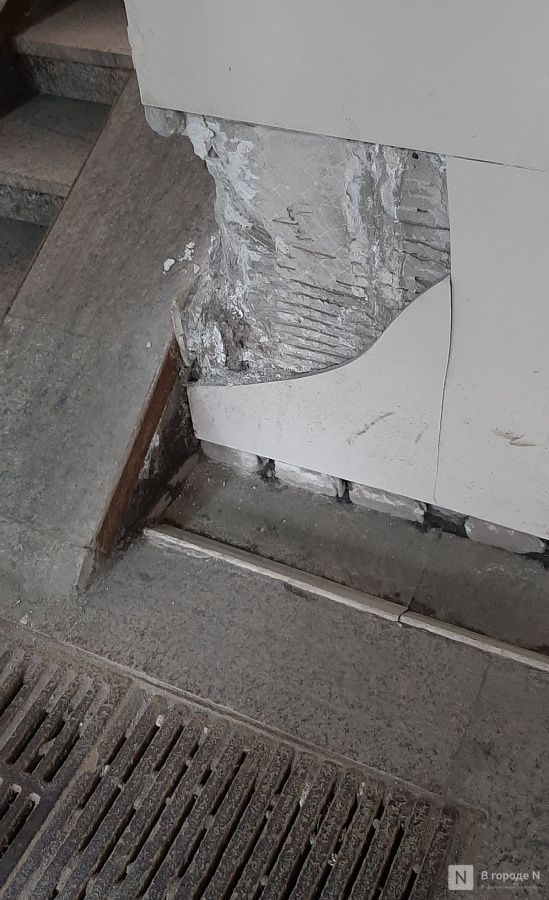 Подземный пешеходный переход у Московского вокзала в Нижнем Новгороде разрушается после ремонта, выполненного менее двух лет назад. Об этом сообщает корреспондент ИА «В городе N», проверившая его состояние.