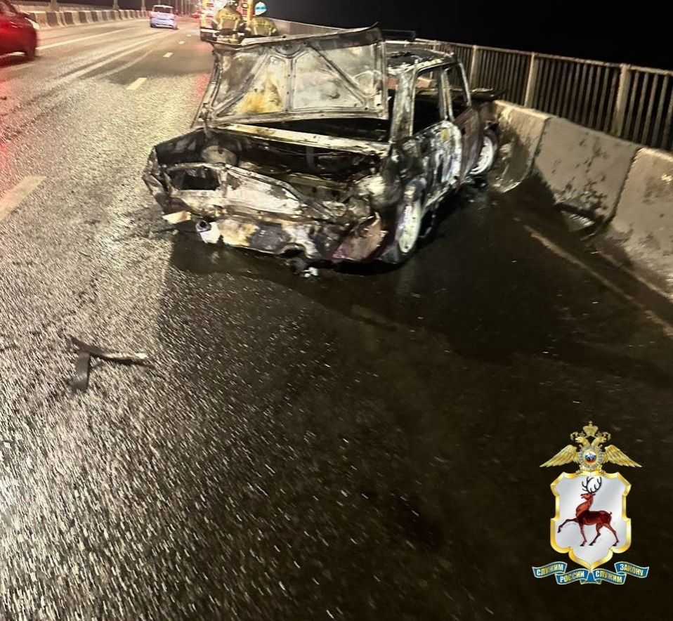 Легковой автомобиль загорелся вчера вечером на Молитовском мосту в Нижнем Новгороде. В пресс-службе областного ГУ МВД рассказали подробности этого ДТП.