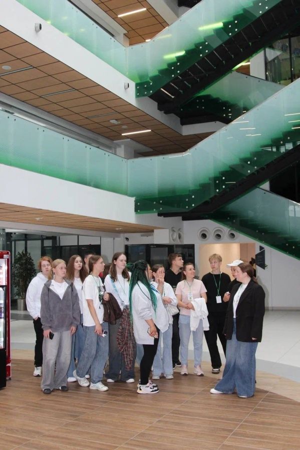 Посетили ребята и большой жилой комплекс, построенный в виде пирамиды с различной инфраструктурой внутри и комфортными условиями проживания для студентов.
