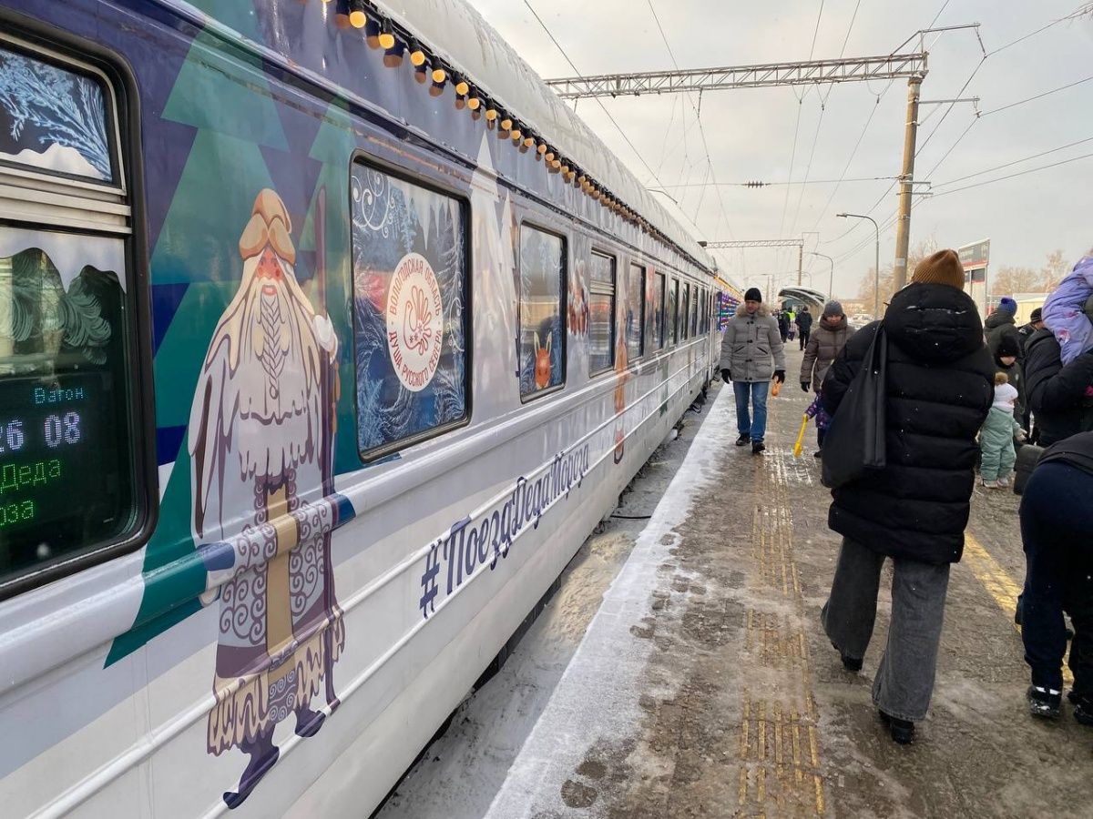 Сказочный тематический поезд Деда Мороза прибыл на Сортировочную станцию в Нижнем Новгороде. Об этом сообщили в пресс-службе ГЖД.