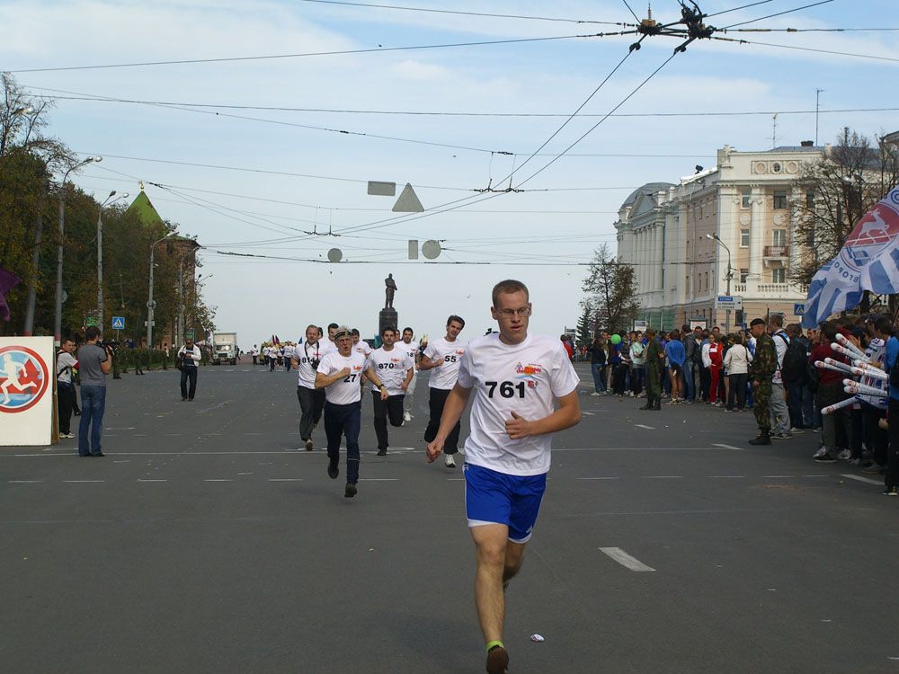 В пробеге на дистанции 600 метров приняли участие учащиеся школ и ВУЗов Нижнего Новгорода и области, а также воспитанники ДЮСШов и сборные ФОКов. По информации регионального министерства спорта и молодежной политики, в мероприятии приняли участие около 8000 человек, в том числе призеры и участники летних Олимпийских и Паралимпийских игр в Лондоне.