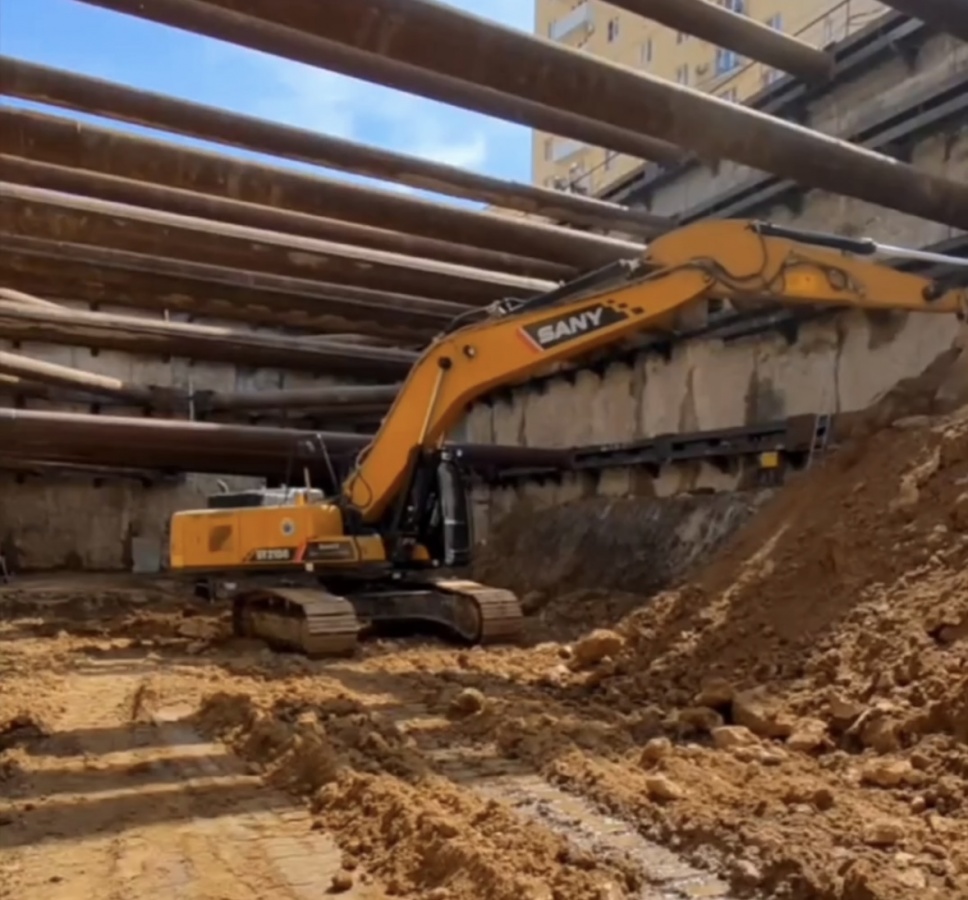 После проходки ТПМК «Владимир» первого тоннеля специалисты укрепляют демонтажную камеру. Сейчас с места строительства вывезено свыше 17 600 кубометров грунта, что можно сравнить с объемом 1100 машин «Камаз». Ключевой частью запланированных работ является монтаж последнего яруса распорной системы котлована. На площадке метростроевцы установили более 250 тонн металлических конструкций, что позволит обеспечить необходимую прочность и устойчивость камеры.