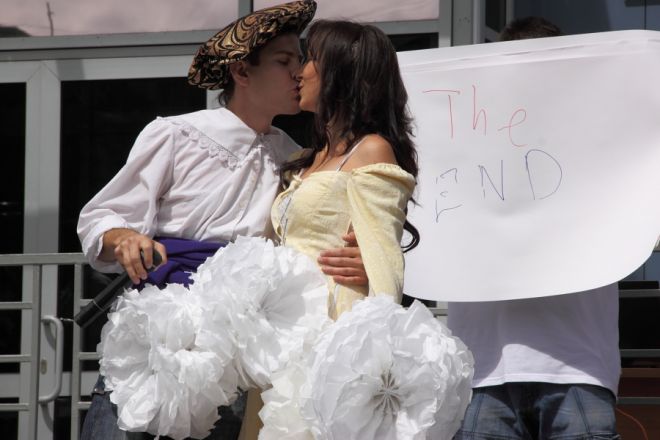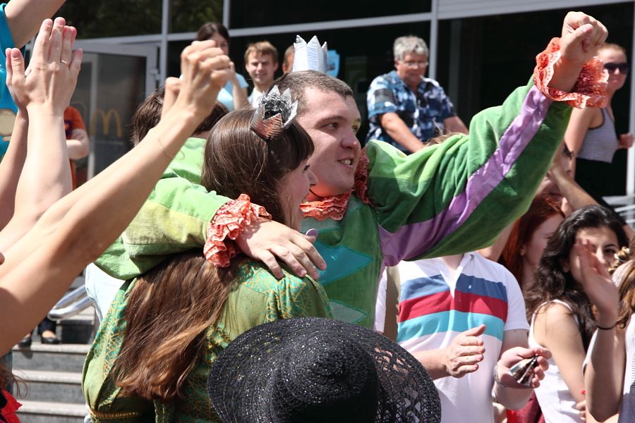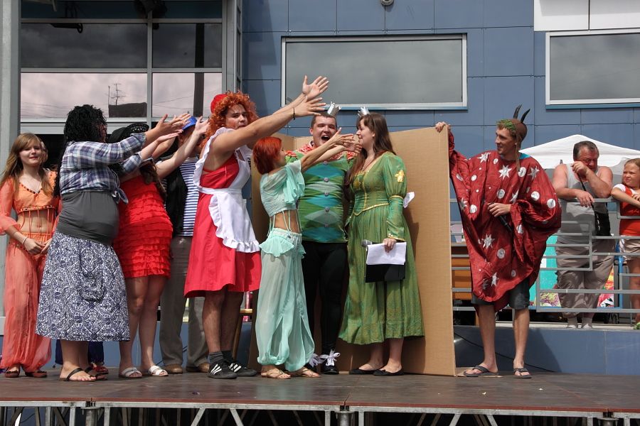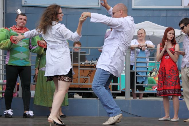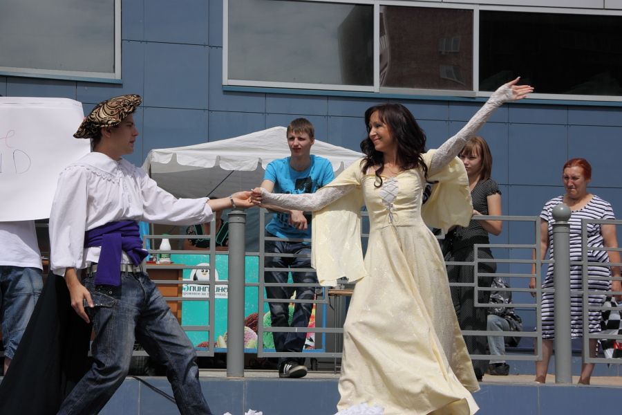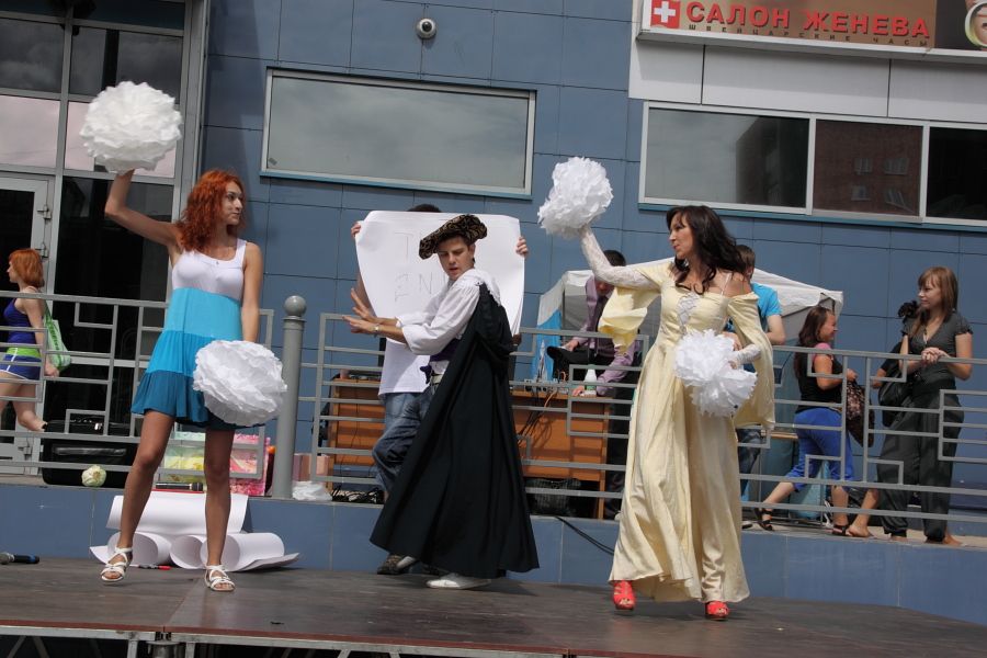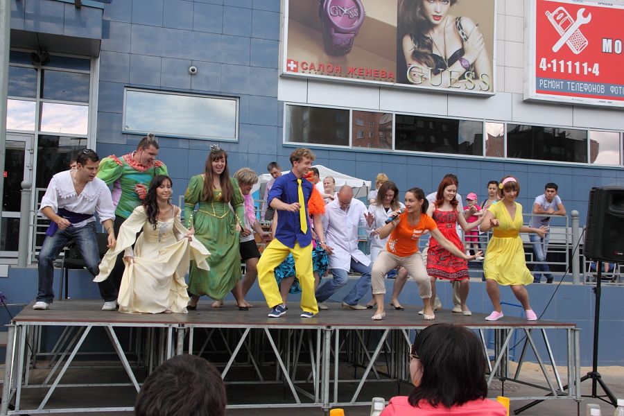 Зрители, которых было немало в субботнее утро возле торгового центра «Гагаринский», увидели грандиозное шоу. На сцене творилось что-то невероятное, герои всеми любимых сказок предстали перед нами в совсем необычном амплуа. Красная Шапочка занималась поднятием штанги в спортзале, а летучая Лада Калина спасала мир от разрушительных сил зла. Все дело в том, что организаторы дали участникам задание показать в музыкальной сказке свою историю знакомства. Совершенно удивительные вещи иногда происходят в реальной жизни, а некоторые из них объединяют сердца.