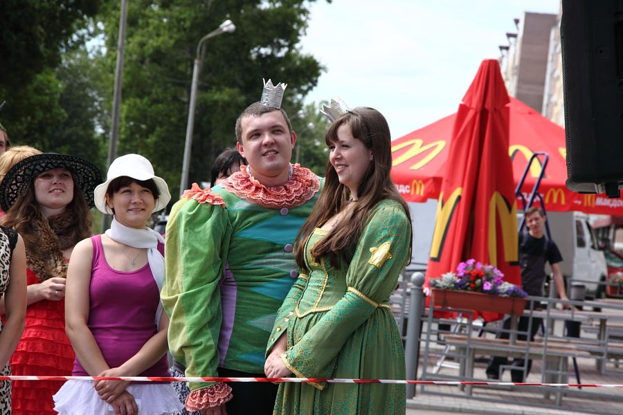 В наше время еще существуют принцы и принцессы, добрые молодцы и нежные красавицы, рыцари и прекрасные дамы сердца. Доказательством этого стал финал конкурса «Свадьба за счет Клуба «В городе N», в котором выступили пять влюбленных пар Нижнего Новгорода. Они боролись не только за свою любовь, но и за весьма ценные призы. Каждый участник претендовал на право стать обладателем целого набора различных услуг и подарков для проведения свадебного торжества: авиабилетов в любой уголок Европы от компании «Туринфо группа РФР» (Tourinfo Lufthansa City Center), умопомрачительного свадебного номера на двоих в гостинице «Волна», оригинального букета для невесты и всех цветочных украшений от магазина цветов «Дизайн-букет», бесподобной свадебной прически от салона красоты «Мандарин» и вкусного торта на свадьбу от компании «Едок». Кроме этого, молодым открывалась прекрасная возможность провести девичник в шикарном ресторане «Килиманджаро» и мальчишник в сауне "Мегаполис-НН". Ценные призы за второе и третье место предоставили роскошный ресторан «Одесса» и кафе-бар «Бриз». Утешительные подарки смелым участникам приготовил Клуб «В городе N».