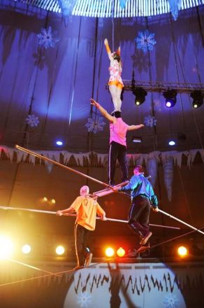 Артисты, взмывающие ввысь, прыжки на ходулях, игривая атмосфера на манеже подарят вам возможность насладится своеобычным номером в полной красе, поразиться чистотой исполнения и неповторимости трюков!!!
