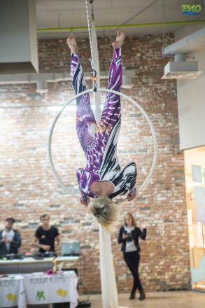 Екатерина показала свои номера на воздушных полотнах и воздушном кольце и провела открытый урок для всех желающих, а также ответила на вопросы журналистов о своем участии на Чемпионате Европы.